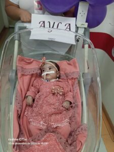 Quando Ayla Vallentina Oliveira veio ao mundo, em 17 de julho, com 39 semanas e 3,32 kg, a mãe Larissa de Oliveira Lauro não poderia imaginar o drama que passariam a enfrentar dentro de poucas horas. Durante o teste do pezinho, começaram os sinais. A recém-nascida apresentava baixa temperatura e pele com coloração arroxeada. Foi levada para cuidados intermediários. Na sequência, vieram convulsão e parada cardíaca. Os exames indicaram cardiopatia congênita e a urgência de cirurgia cardíaca, num ágil e preciso diagnóstico da equipe médica da Santa Casa de Misericórdia de Mogi das Cruzes.