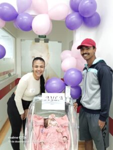 Muito sensibilizada com a mobilização das equipes da Santa Casa, Larissa fez questão de registrar os agradecimentos à coordenadora Sandra; ao coordenador médico da Unidade Neonatal, Gustavo Macedo Muniz; às técnicas de Enfermagem Micheli de Souza Brejo Cardoso e Viviane Gonçalves Leme Motta; e às fisioterapeutas Eliane Aparecida Roque e Débora Rodrigues do Nascimento. “Todos ajudaram demais a gente e em nome deles agradeço de coração à Santa Casa. Ayla é uma bênção!”